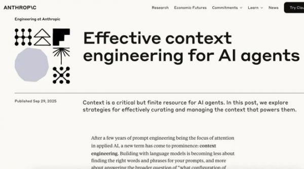 Anthropic发布Claude Sonnet 4.5时顺便也发了一篇文章,讲的是上下文工程