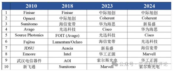 2024年全球前十大光模块厂商市占率合计69.3%,其中中国企业数量从2018年的3个跃升至2024年的7个。中际旭创以33亿美元营收登顶全球第一,新易盛排名跃升至第三,形成了“中国军团”主导的产业格局。