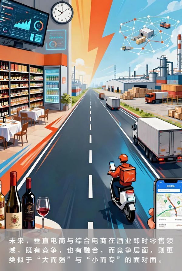 业内人士认为,未来,垂直电商与综合电商在酒业即时零售领域,既有竞争,也有融合;既有资源、流量的直接竞争,也有类似于小平台接入大平台的融合,而竞争层面,则更类似于“大而强”与“小而专”的面对面。