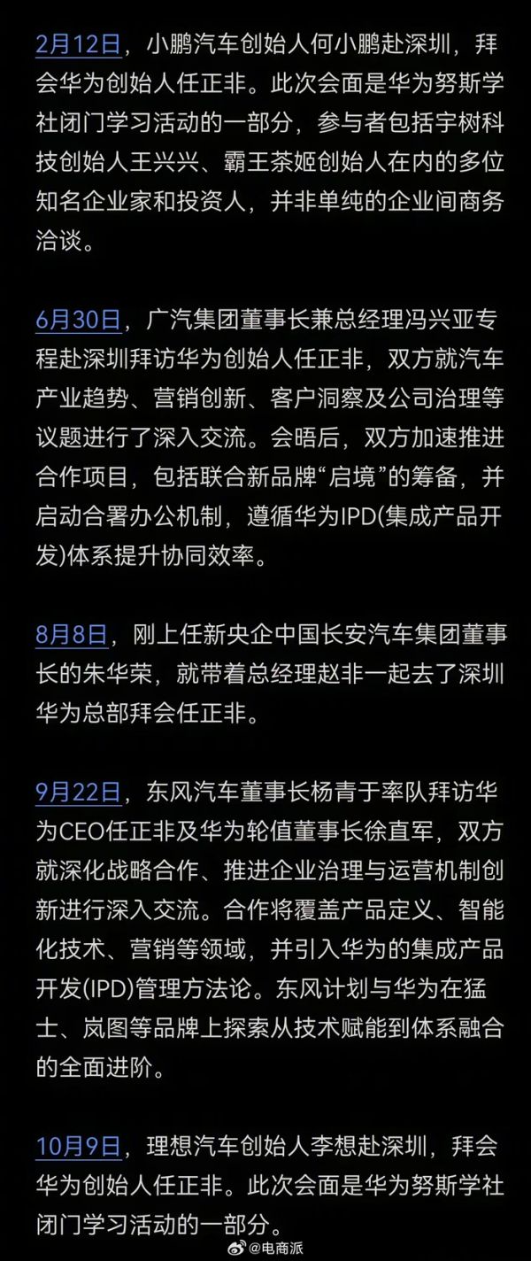 时间:2025年10月12日 22:51继何小鹏之后,李想也拜访任正非了,他已是今年第五位拜访任总的造车企业家。