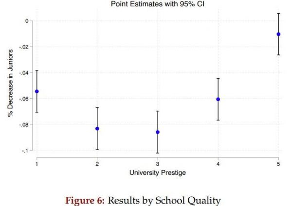 员工毕业学校的声望与初级岗位减少的关系|图源:论文