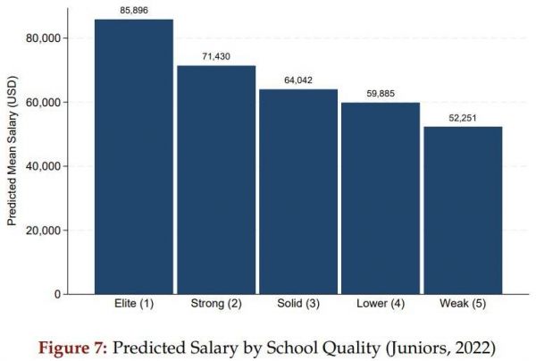 五个学校等级的估算平均薪资|图源:论文