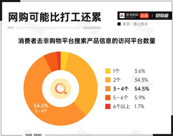 不仅如此,面对令人眼花缭乱的商品概念,消费者在购物时需要做更详细的功课,大大增加了消费者的负担。有报告显示,超半数消费者在决策过程中,会前往3-4个非购物平台搜索产品信息。