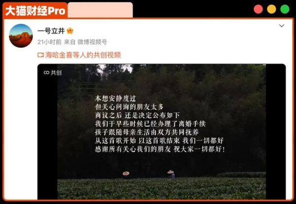 离婚的传闻早有,但是被海哈金喜辟谣,还披露了家庭近况,没有房产,还债优先,“换了一个小面积的房子,降低一下生活成本,积极面对困难”。