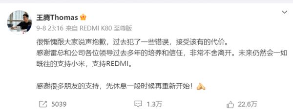 没闹掰?王腾被辞后力挺红米K90大卖!小米高管回应来了