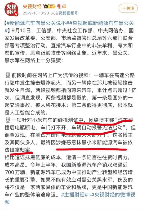 时间:2025年10月19日 19:17小米九月开始就一直在呼吁打击黑公关,记得那时候央视还举例某媒体故意捏造小米汽车撞击后断电,最后博主被抓判刑。最近两个月,某视频平台上,对小米碰瓷的越来越多,正常的小问题,都能获得大量流量,评论里各种对小米汽车的造谣。还有很多博主为了流量,贬低小米自研芯片,主观攻击小米产品,视频里基本都是主观指责和发泄情绪,随便一个视频七八千评论。这些只有小米自己知道,外人哪里知道小米的苦。这点我相信很多大众刷视频时都能看到!