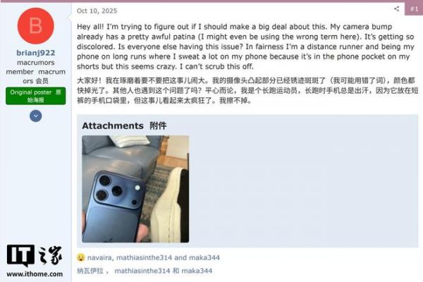 部分苹果 iPhone 17 Pro/Max 用户反馈机身褪色