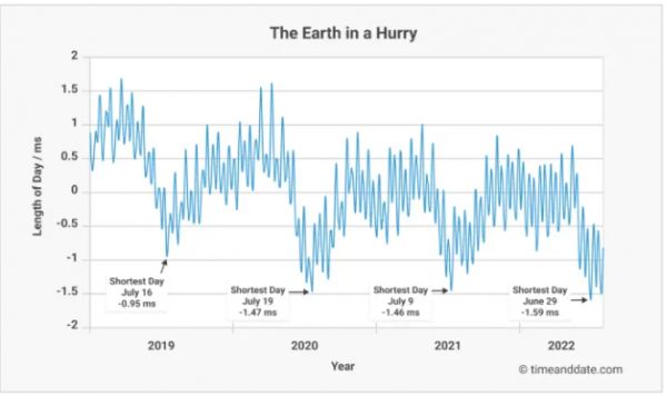 2022年6月29日,地球创造了有纪录以来最短的一天