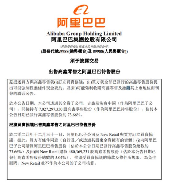 而备受瞩目的要数今年年初,阿里以最高约131.38亿港元出售所持高鑫零售全部股权。