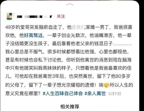 49岁堂哥被缅怀的本质是大众重新意识到阶级跃迁的艰难了。