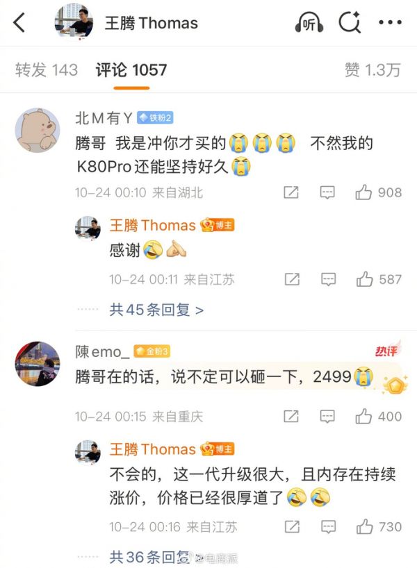 没闹掰?王腾被辞后力挺红米K90大卖!小米高管回应来了