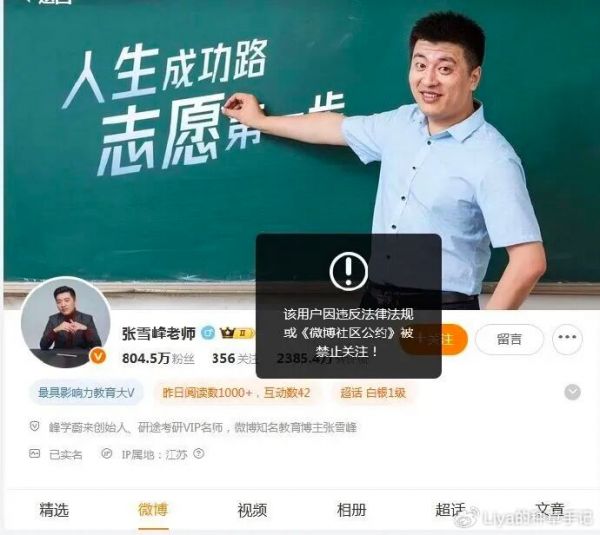 时间拉回9月24日,张雪峰的全平台账号突然集体“失声”,四大平台都标注“违反法律法规或社区公约”,当时他的粉丝总和已超6500万。