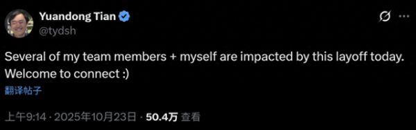 值得注意的是,消息传出后不久,一些Meta员工开始在X(原推特)等社交平台上公开求职,其中包括Meta AI华人科学家、FAIR研究员及高级经理田渊栋。田渊栋在X上发帖称,他和自己团队中的几名成员都受到了裁员的影响。在其评论区,立刻有来自OpenAI以及各种AI初创企业的员工递上“橄榄枝”,还有人建议他回到中国发展。