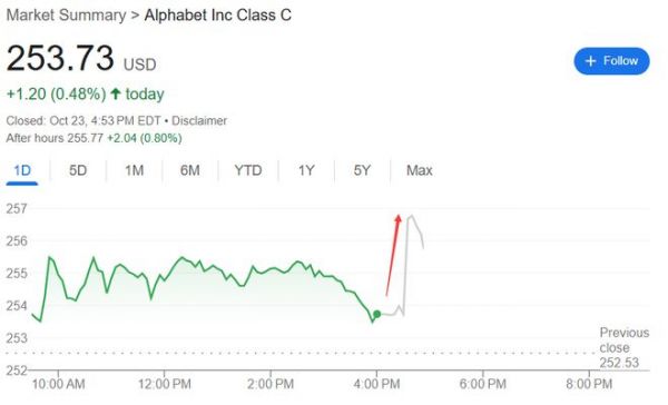 (谷歌母公司Alphabet盘后短线快速上行近1%)