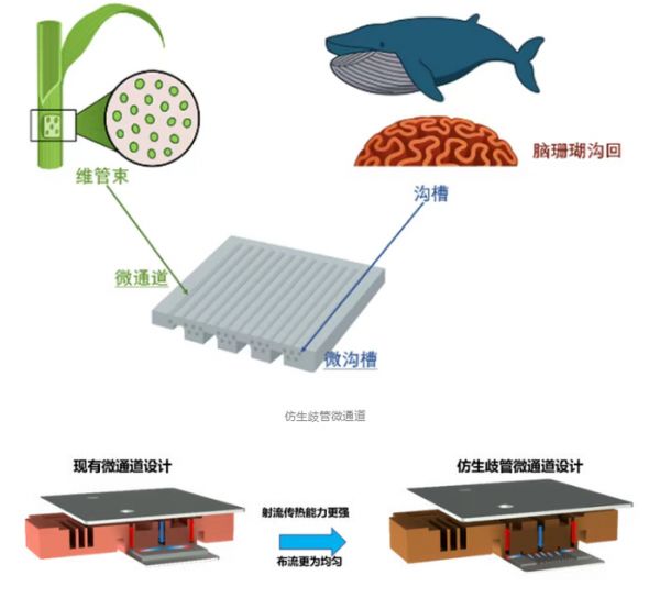 该创新技术基于自然界血管与叶脉网络启发的仿生歧管微通道架构,构建多级渐缩均流通道与局部再发展结构,使冷却液在芯片底部实现快速均匀分配,大幅提升对流换热能力并显著降低压降。同时,引入高导热界面复合材料,与微通道形成嵌入式热通路协同效应,有效降低界面热阻与面内温差,为高发热区提供更精准、更高效的热量抽取,全面抑制热点失效和性能退化。