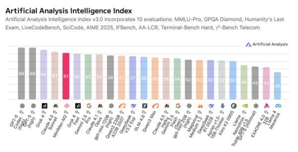 10月27日,澎湃新闻记者获悉,MiniMax(稀宇极智)发布并开源新一代文本大模型MiniMax-M2,在全球权威测评榜单Artificial Analysis (AA)中总分位列全球前五、开源第一,跻身全球第一梯队,与OpenAI、谷歌等硅谷巨头同台竞技,这也是中国开源大模型首次在该榜单中跻身全球前五。