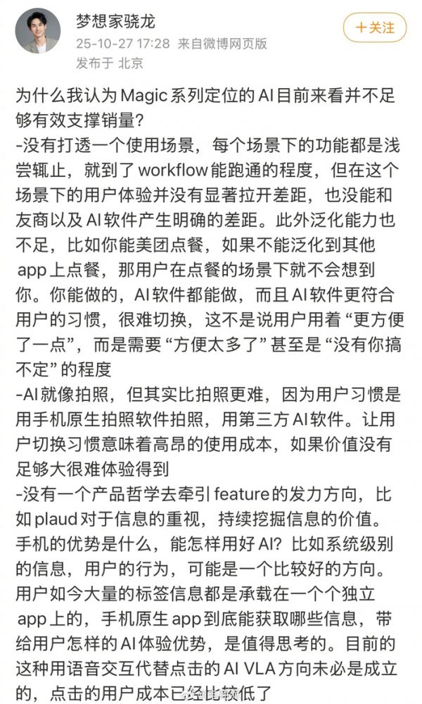 网址: 前荣耀产品经理韦骁龙点评Magic8 http://www.xishuta.com/newsview143638.html