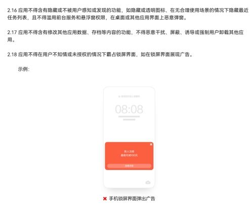 鸿蒙的权限和广告体验的审核几乎是“零容忍”。它明确规定,应用不能在用户不知情时“霸占锁屏”,不能恶意弹窗,不能在通知栏推送营销信息,更不能用“虚假关闭按钮”欺骗用户,同时要求应用的权限最小化。