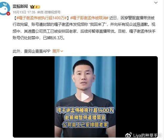 图源:抖音他的火,从来不是偶然。笔者始终觉得,张雪峰踩中了最精准的时代痛点——升学与就业焦虑。艾媒报告显示,2025年高考志愿填报付费市场近10亿元,80万家长愿意为信息差买单。他的“梦想卡”卖12999元,“圆梦卡”高达18999元,2万个名额数小时售罄,这就是焦虑变现的硬实力。短期封禁对他几乎无影响。名下8家存续企业,间接投资超140家公司,横跨教育、科技等多个领域,早已构建起脱离个人IP的商业闭环。家长们需要一个“懂行”的领路人,资本需要一个能持续造血的IP,平台需要能留住用户的流量锚点,三者合力让他成了“禁不起”的网红。但危机从未消失。争议言论于他而言,像低成本的获客利器。如今收敛锋芒是权宜之计还是真心转变?若哪天焦虑市场降温,他会不会再次冒险触碰红线?这些问号,是悬在他商业版图上的达摩克利斯之剑。比起张雪峰,嘎子哥谢孟伟的“复活”更显荒诞。穿警服带货被行拘7天,这种突破法律底线的错误,本应让他彻底淡出公众视野。可账号解封后,合作公司竟直接涨价1.5倍,理由是“市场热度提升”。这种“越黑越红”的逻辑,暴露了资本对流量的无底线追逐。但热度真能转化为信任吗?笔者对此深表怀疑。张雪峰的火源于刚性需求,而嘎子哥的“热度”多是猎奇与嘲讽。他的形象早已崩塌,即便恢复关注功能,观众也很难再为其带货的商品买单。