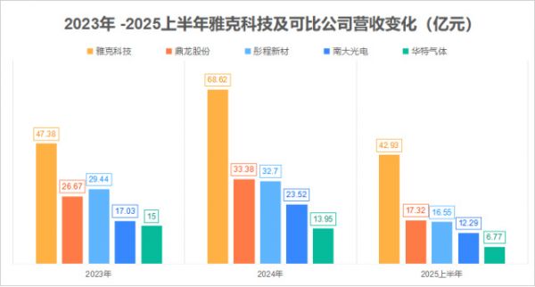 2024年,雅克科技营收高达68.62亿元,这个体量是鼎龙股份、彤程新材等公司的两倍还多。