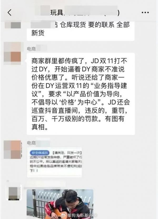 网传截图显示,京东要求商家不强调低价、不搞直播抽奖、不发优惠券。还专门组建了巡查小组,巡查商家的抖音直播间,一旦发现商家有违规现象,就会对其处以百万、千万级别的罚款。之后,消息称,美的因为价格问题,被京东罚款了500万元,然而这一传闻被双方否认。京东则回应,近期“京东对美的巨额罚款”“京东二选一”等谣言,是因为京东要求在自己平台上的售价不能高于其他平台,引发与抖音直播间之间的价格竞争而产生的。然而这事还没完,疑似抖音大家电负责人李文涛近期曾在朋友圈喊话京东:“得道多助失道寡助,好的商业模式一定是利他的,友商的动作显然是不利于合作伙伴发展的。”