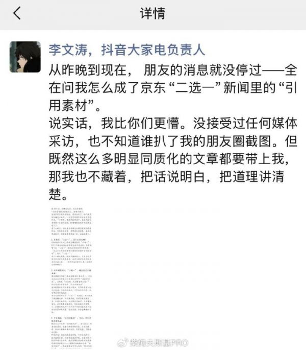 抖音高管长文炮轰京东:卡商家命门、抢钱吸血、二选一没什么好洗的