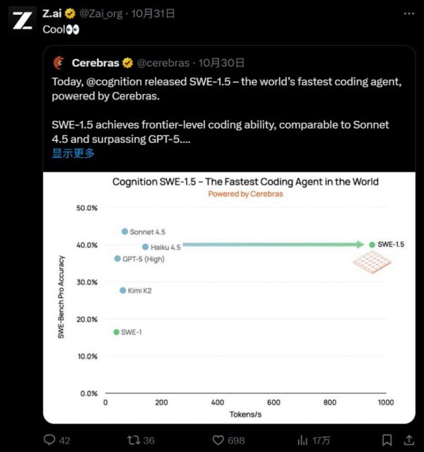 智谱的官推也来转推祝贺。
