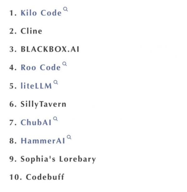 国内大模型厂商还在牌桌上的玩家,也“不约而同”地瞄向Coding这个确定性的战场。OpenRouter作为连接上百种大模型的全球大模型超市,平台上的模型调用量是全球开发者真金白银投出来的结果,也是目前最接近真相的“过滤器”。2025年9月,OpenRouter调用量Top10产品排名中,前5名有4家是Coding工具。