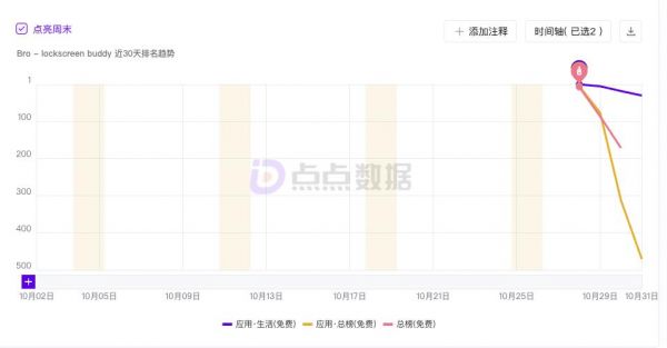 这可能也是 Bro 在冲击美榜总榜一天后,就迅速滑落的原因。截止 10 月 31 日,Bro 已经上线 4 天,虽然一直有在进行广告投放,但榜单上的排名一直在掉,目前已经掉出美国 iOS 下载总榜 500 位开外,生活分类下载榜仅排名第 30 位。除此之外,从用户评论来看,订阅价格高且必须订阅才能使用,以及较多的 Bug,是用户们“退坑”的直接原因。