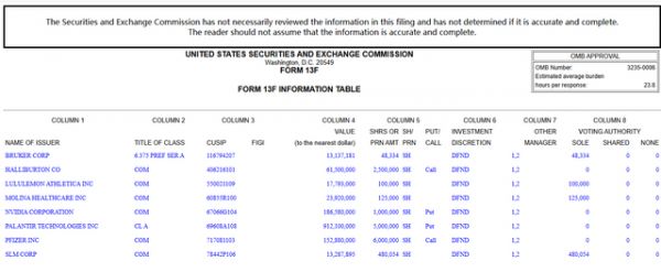 13F文件的前半部分平淡无奇:主要显示了其对Bruker、Lululemon以及SLM和莫利纳医疗等传统小盘股的持仓。