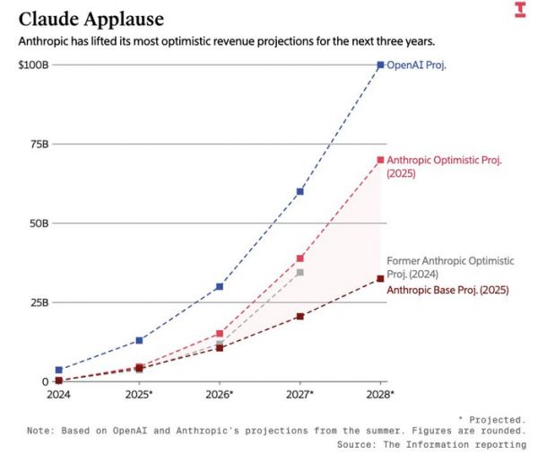 在与OpenAI的竞争中,Anthropic在企业API销售、实现现金流效率等方面上形成了差异化路径,从其乐观的财务预测可见雄心。