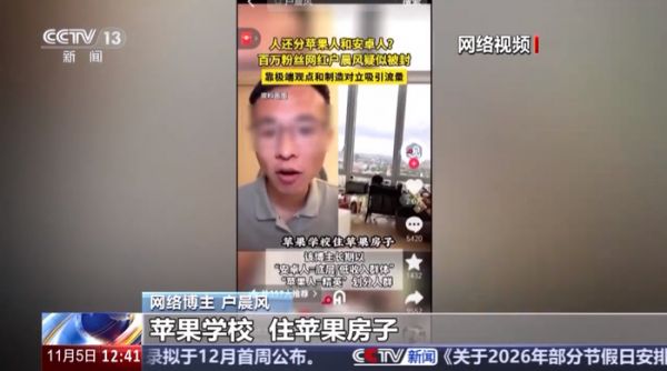 11 月 5 日消息,大家最近刷到央视《法治在线》那档曝光节目没?小雷我看完真是气不打一处来。之前那位百万粉丝网红户晨风被全网封杀了,原因是这人为了涨粉变现,居然把用手机的习惯分成了三六九等,硬生生制造出“苹果人”“安卓人”的对立,真是把流量密码玩成了没底线的闹剧。