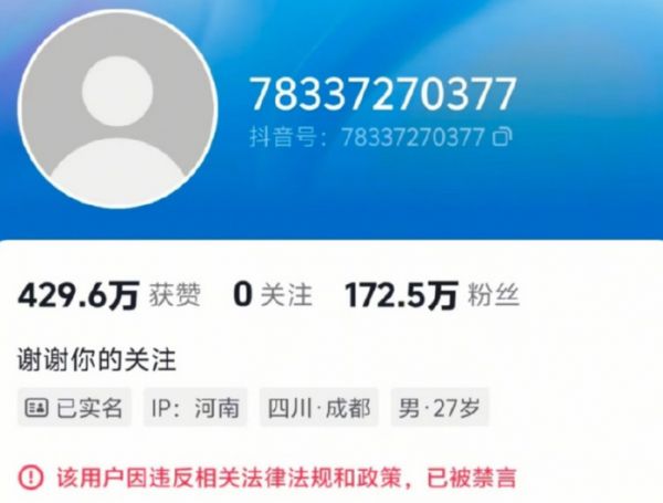 不过好在监管没惯着他。9 月 20 号那天,多个平台直接把他的账号封了,内容全清空,最后连账号都彻底注销了。
