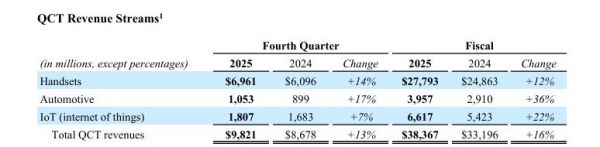 11月6日消息,美国当地时间周三,高通发布截至9月28日的2025财年第四财季(对应自然年2025年第三季度)及全年财报。