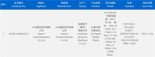 认证信息显示,REDMI Turbo 5支持100W有线闪充,这个规格目前已经成为小米旗下主流标配。