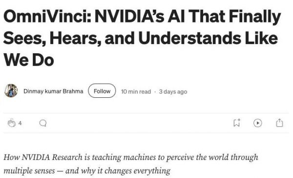 如果说英伟达之前的开源模型还只是在特定领域细分布局,那么OmniVinci的发布,则是一次真正意义上的「全线压上」。