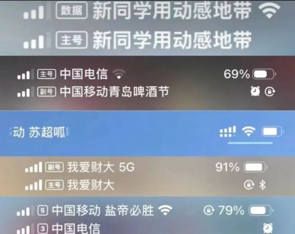 有用户晒图显示,自己的信号栏变成了“青岛啤酒节”, “逐梦北马” 等推广语,还有学生用户遇到“新同学用动感地带”的字样。