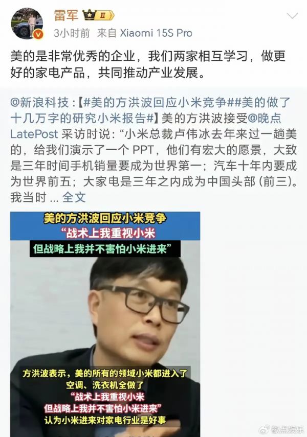 与雷军分道扬镳,美的方洪波言论刷屏,十几万字报告拆解小米