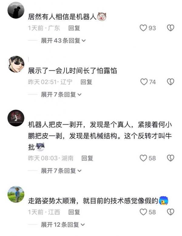 IRON机器人恰好处于这个敏感区域——它高度仿生,但又并非完全像真人,这种微妙的不协调感放大了人们的怀疑。