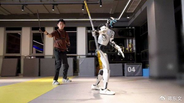 就像电影《铁甲钢拳》一样,在人类遥操作的控制下,宇树G1机器人能同步做出踢足球、耍长棍、打拳击等动作,不再只是学习模仿而是在“复制”。
