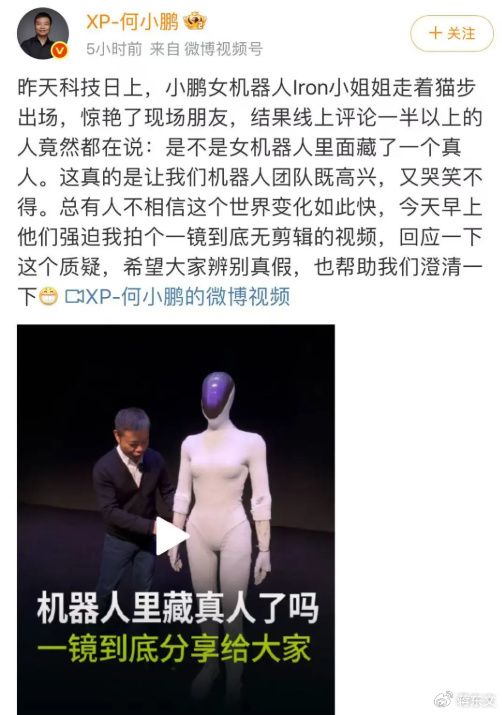 不少网友纷纷质疑“小鹏IRON里藏了真人?”何小鹏既高兴又啼笑皆非地回应道:“感谢认可。”
