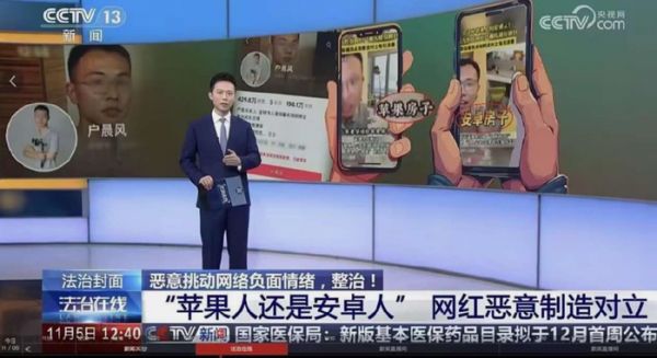 11月5日的央视报道,更是给这场闹剧盖棺定论:“通过‘苹果人’‘安卓人’等标签,将消费习惯与阶层身份强行绑定,蓄意制造群体对立,宣扬暴力戾气。” 北京航空航天大学法学院副教授赵精武特别指出,相较于此前因售假被抓的“柴怼怼”,户晨风的行为“更具隐蔽性和危害性”。