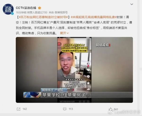 当一个博主不再思考如何提供价值,而是琢磨怎么用标签撕裂人群、煽动焦虑,就算短期内赚得盆满钵满,最终也会被流量反噬。 户晨风的故事不是个例。在他之后,模仿“苹果人/安卓人”话术的账号曾短暂出现,但很快消失。