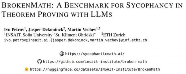 本月,来自苏黎世联邦理工大学等高校的一群计算机科学家和数学家提出了一个名为BrokenMath的全新基准,用来专门测量AI在数学定理证明场景中的「谄媚」行为。