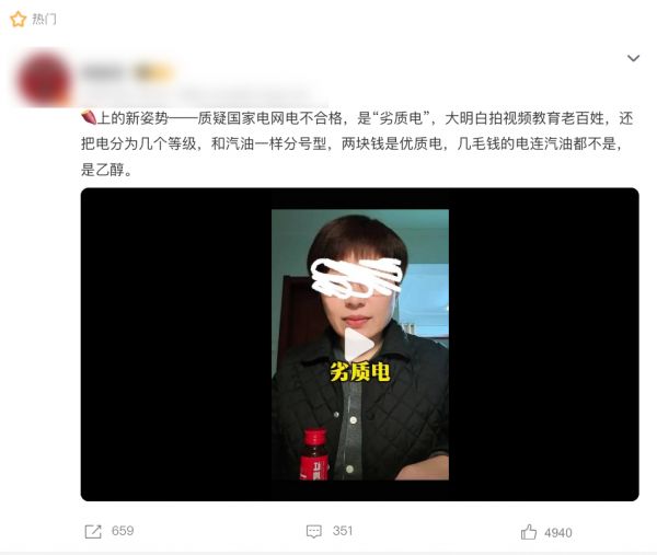 陈某的“劣质电理论”非常简单粗暴——以电价划分“电的优劣”,也就是两块多的电是“优质电”,对应98号汽油,一块八左右的电对应91号汽油,四五毛的电则被贴上“劣质电”标签,硬类比成乙醇汽油。