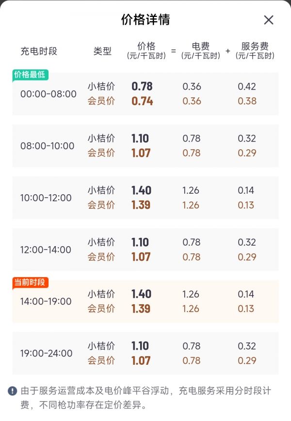 其二,峰谷电价政策是影响充电费用的关键因素。国内多数地区已实行峰谷分时电价,用电高峰时段充电成本更高,低谷时段则更为划算。以电车通身处的广州地区为例,同一充电桩在高峰时段电价可以达到 1.5 元/度,而低谷时段可以低至 0.7 元/度,价差超一倍。