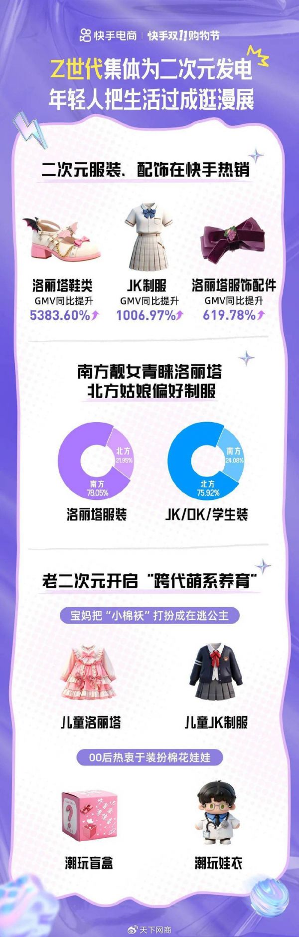 二次元消费的全面爆发,标志着年轻一代的文化认同已从圈层共鸣转化为强劲的消费动能。数据显示,双十一期间快手平台二次元相关品类增速惊人,Z世代用消费把生活过成了“移动漫展”。