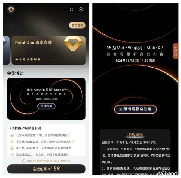 这就是Petal One尊享会员的排面!华为Mate 80系列发布会,我先报名了