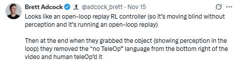 Brett Adcock对中国机器人公司的成果似乎抱有普遍的怀疑态度。此前他公开质疑中国另一家机器人公司——优必选(UBTECH)的帖子,并直言不讳地指出: