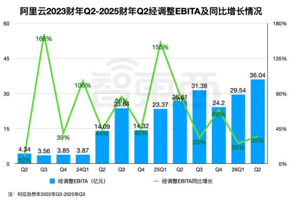 该季度阿里云经调整EBITA为36.04亿元人民币,同比增长35%。这主要是由于收入增长和运营效率的提升所致,部分被对客户增长和技术创新的投入增加所抵销。